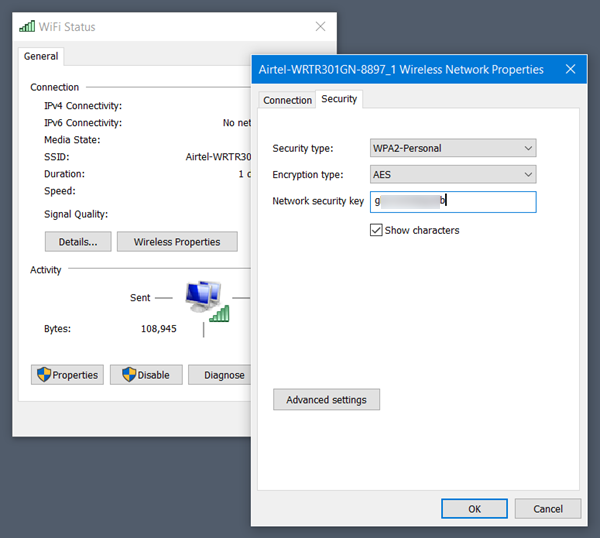 V odprtem oknu z desnim miškinim gumbom najdite Wi-Fi adapter, pod njim izberite Status > Brezžične lastnosti in pod zavihkom Varnost bi morali videti geslo, skrito pred nedobrodošlimi očmi s pomočjo črnih pik. Za zaobitev zaščite enostavno obkljukajte kvadratek Pokaži znake in geslo Wi-Fi omrežja bi moralo postati vidno.